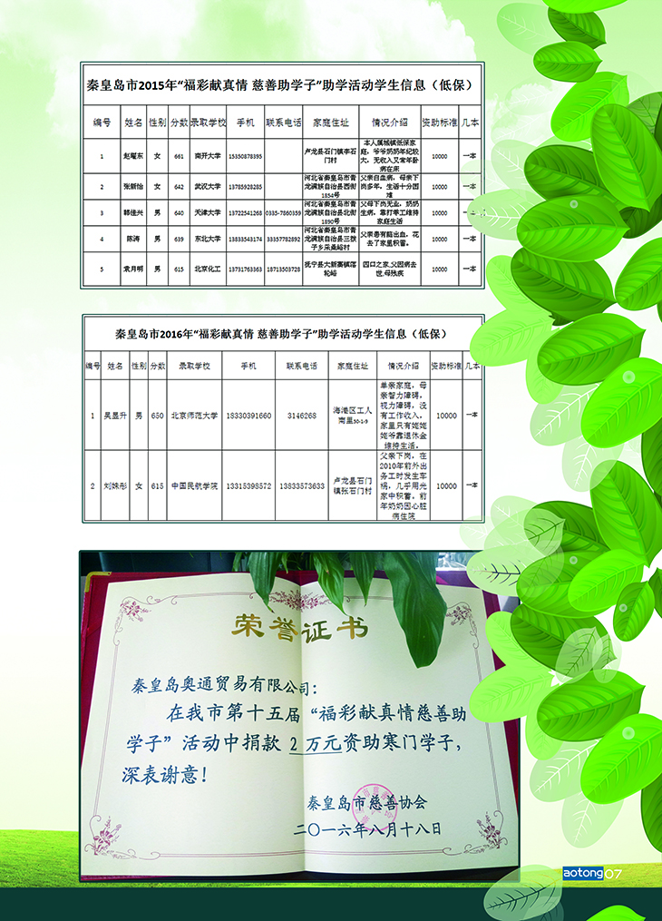 我市“福彩獻(xiàn)真情 慈善助學(xué)子”活動從2002年至今,已累計投入資助金3200萬元,資助人數(shù)6600多人,曾多次榮獲中華慈善總會、省慈善總會兩級慈善項目獎,已成為我市最具影響力的一個公益品牌,為秦皇島這座“中國最具愛心城市”提供了生動的注腳。