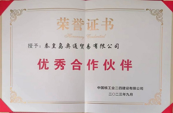 我公司在與中國(guó)核工業(yè)二四建設(shè)有限公司合作的海陽基地防沖板及基地民用項(xiàng)目和漳州核電廠1、2#機(jī)組鋼結(jié)構(gòu)工程項(xiàng)目中,以專業(yè)的業(yè)務(wù)水平,良好的服務(wù)態(tài)度,及時(shí)的交貨能力,有效的保障了兩個(gè)工程項(xiàng)目的順利進(jìn)行,在合作過程中得到了中國(guó)核工業(yè)二四建設(shè)有限公司高度認(rèn)可,并授予我公司優(yōu)秀合作伙伴稱號(hào)。